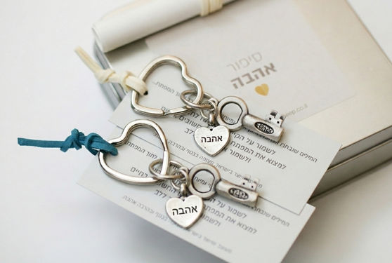 צמד מפתחות לרגע שיש אהבה באוויר, מפתחות עם הקדשה בתוך המפתח ותליון לב אהבה.
